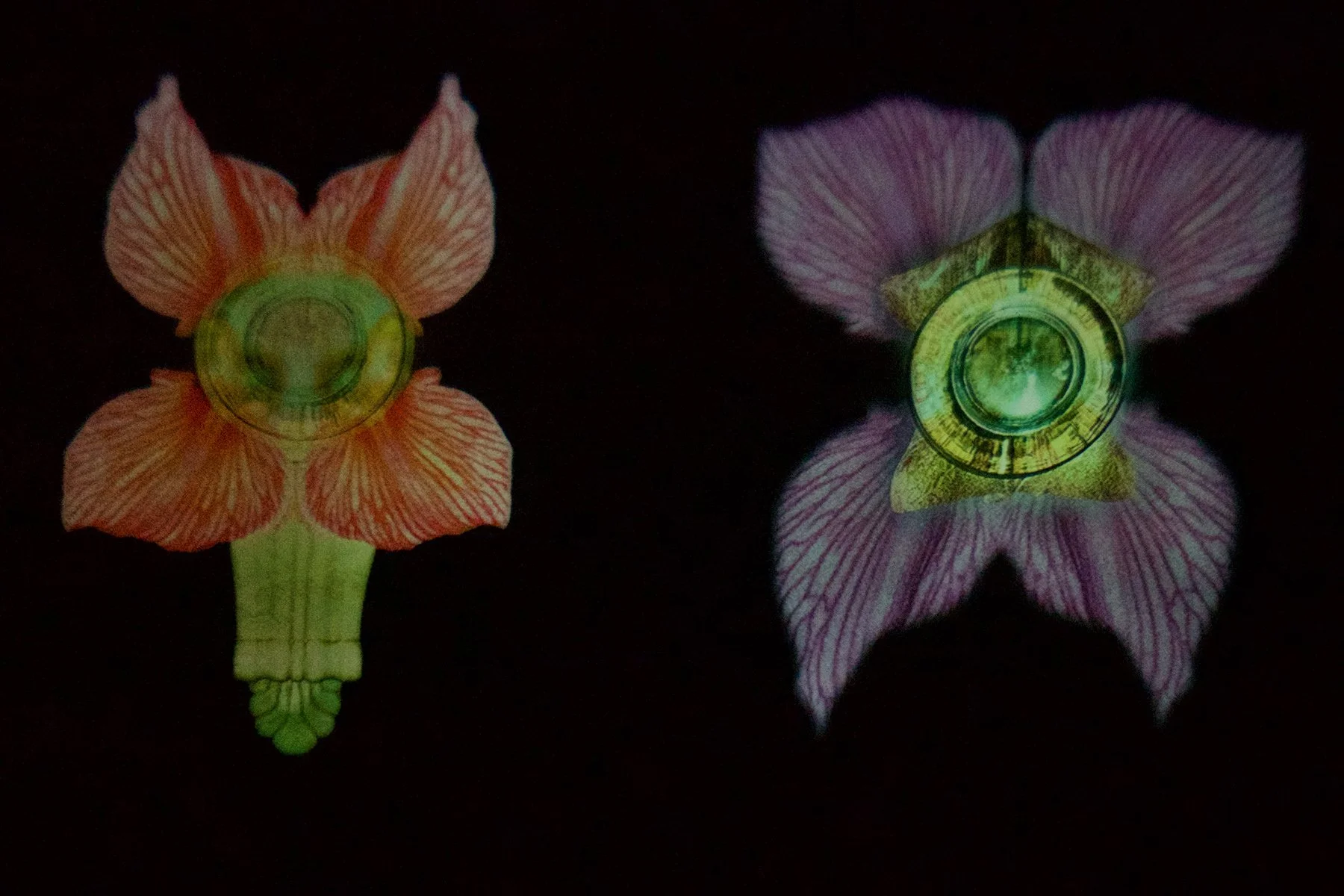 Essence serves as a meditation on the value and fragility of interior states, ultimately calling for a conscious and passionate embrace of enchantment. Essence is a continuation of Freya Burnett’s exploration of feminine interiority, enchantment and the brain as a site of tenderness. The work places viewers within an immersive projection-mapped environment that operates as a loosely defined interior. The projected surfaces build a reflective atmosphere, nesting textures together; Jewel tones, carbonated liquids, speckled light and mirror-like imagery that build on Burnett’s existing visual language. Fergus Waveforms (Tāmaki Makaurau) constructed the soundscape for Essence using Ableton Live Software. Contrasting sonic characters, Waveforms used a different type of digital synthesis including granular, wavetable and subtractive synths to generate each individual layer of sound.