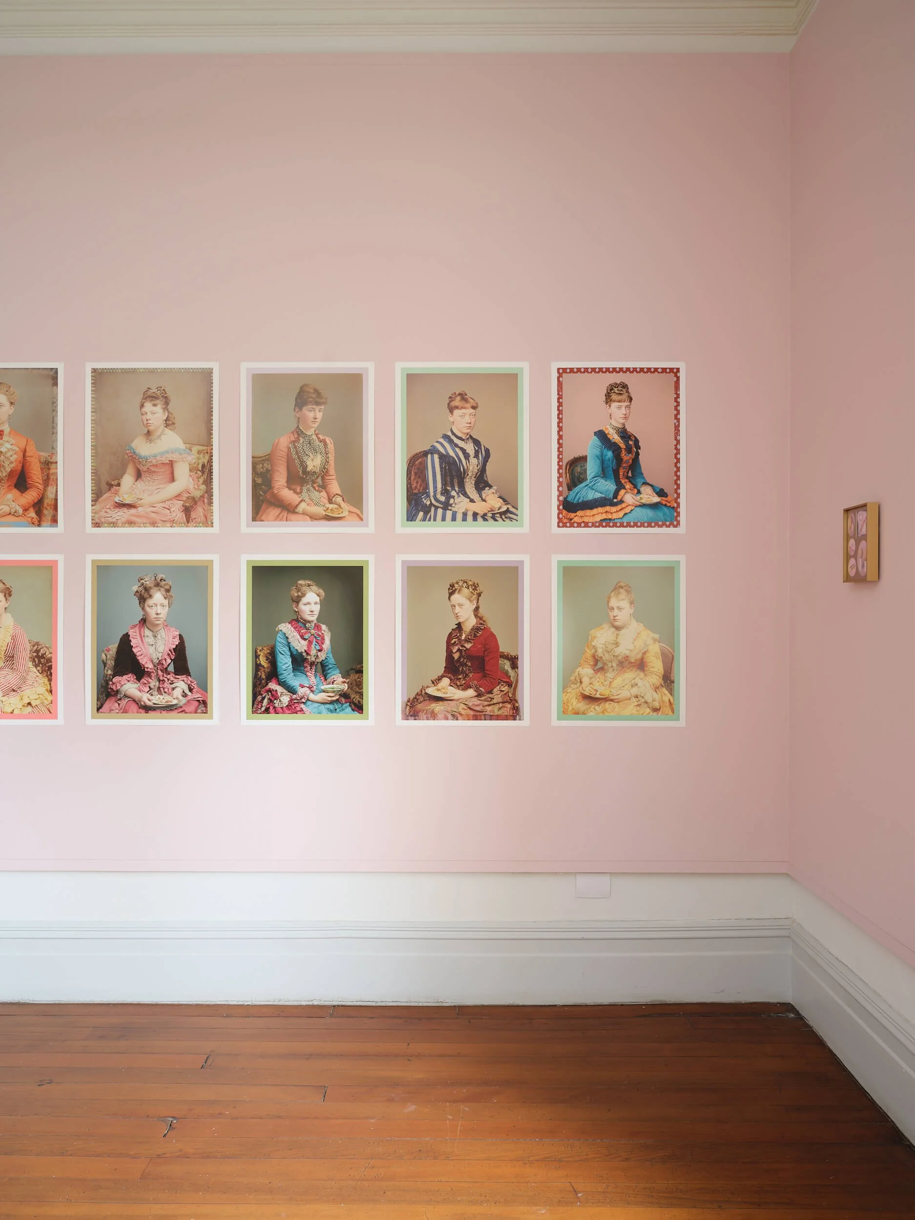 In Todd’s new AI generated series, Sullen 1880s Nibblers (2025), an array of unenthusiastic Victorian women mindlessly probe and poke at the dainty plates of food they hold on to their laps. Their movements are small and habitual; the act of eating becomes emptied of pleasure and transformed into a performance of restraint, an obligation rather than a desire. Within the historic grandeur of the Pah Homestead, their distracted prodding becomes a quiet form of resistance—a refusal to consume fully, to satisfy expectation, or to disappear politely into the background. Todd’s knowledge of staged photography informs her use of AI, allowing her to extend and develop the tropes of portraiture that she has been invested in throughout her career. Food is an expansive yet deeply personal subject; everyone has strongly held views, traditions and preferences around what they eat (and don’t eat). Diary of a Carrot speaks to Todd’s interest in skewing the familiar, as well as the uncanny, and the absurd — all through the lens of food.